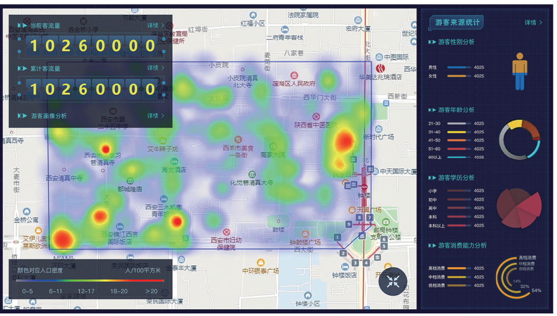 全面的數據維度。硬件采集的非結構化數據快速過濾和進行冗余的刪除 ,對于游客行為和游客身份有關的數據進行入庫處理,同時結合消費數據對于管理和營銷做為指導。
