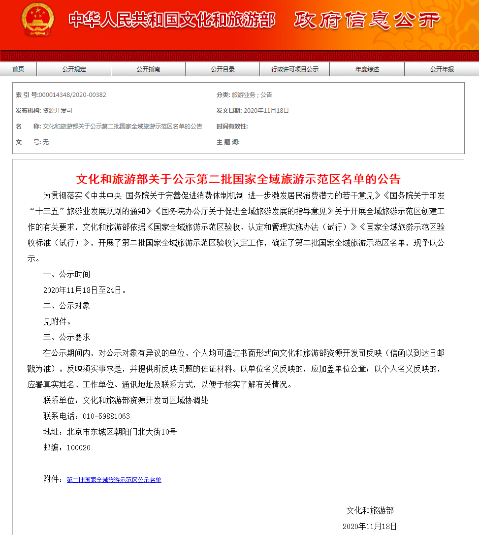 文旅部公示第二批國家全域旅游示范區名單